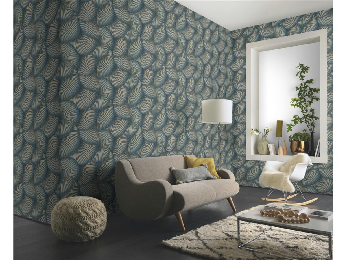 Erismann Fashion for Walls Twill Wallpaper 10525-08 Blue/Gold