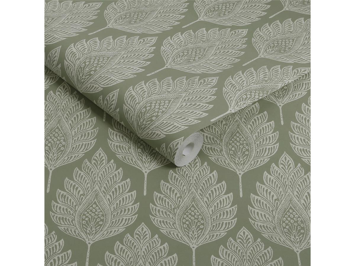 GRAHAM AND BROWN JAIPUR WALLPAPER COLLECTION Flame Leaf 142308 Sage